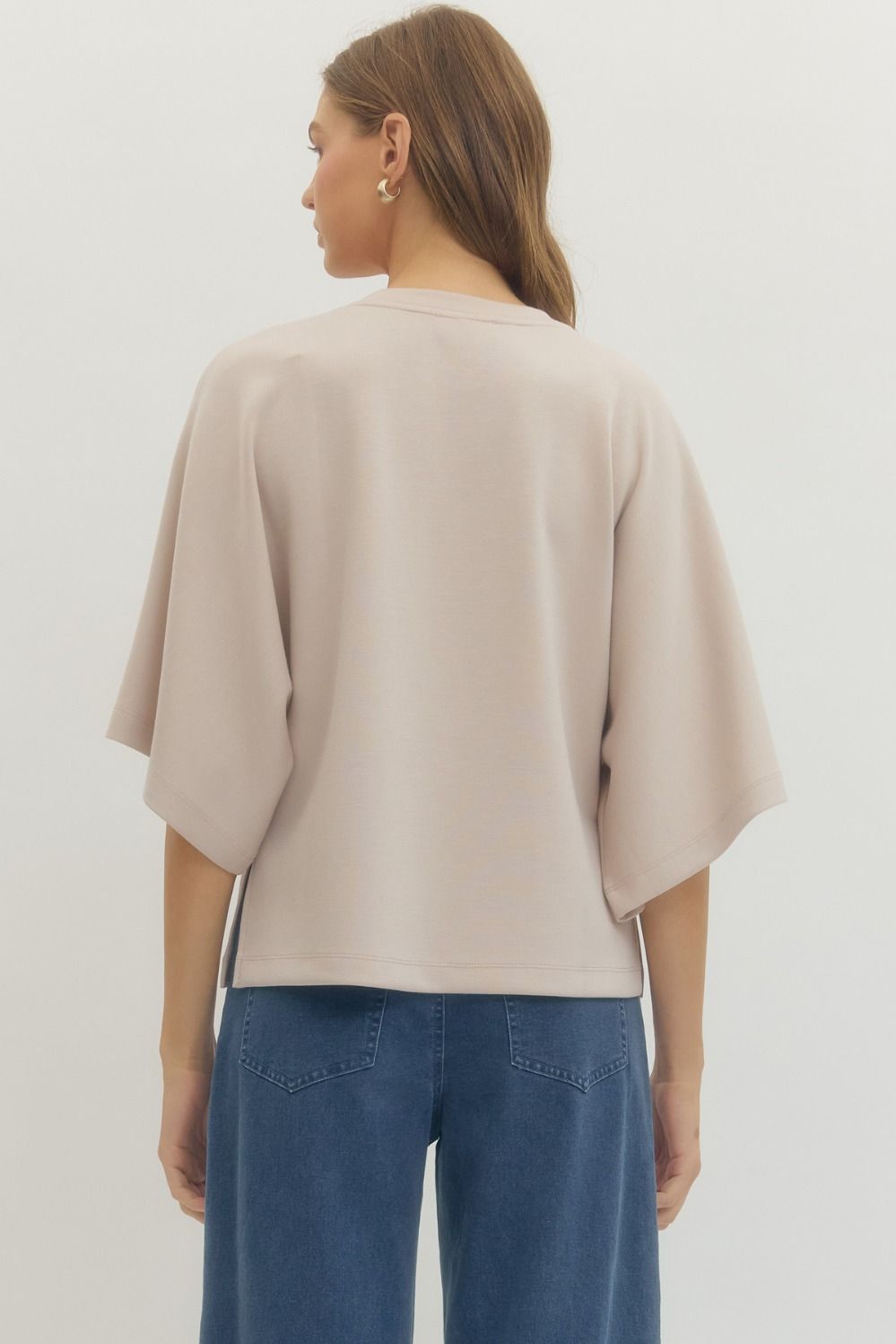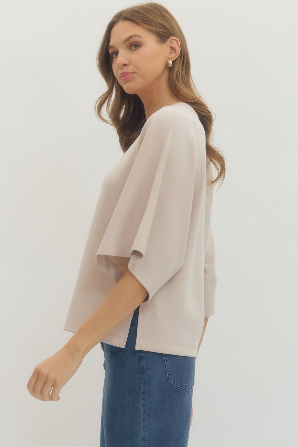 Oatmeal Solid 3/4 Sleeve Top