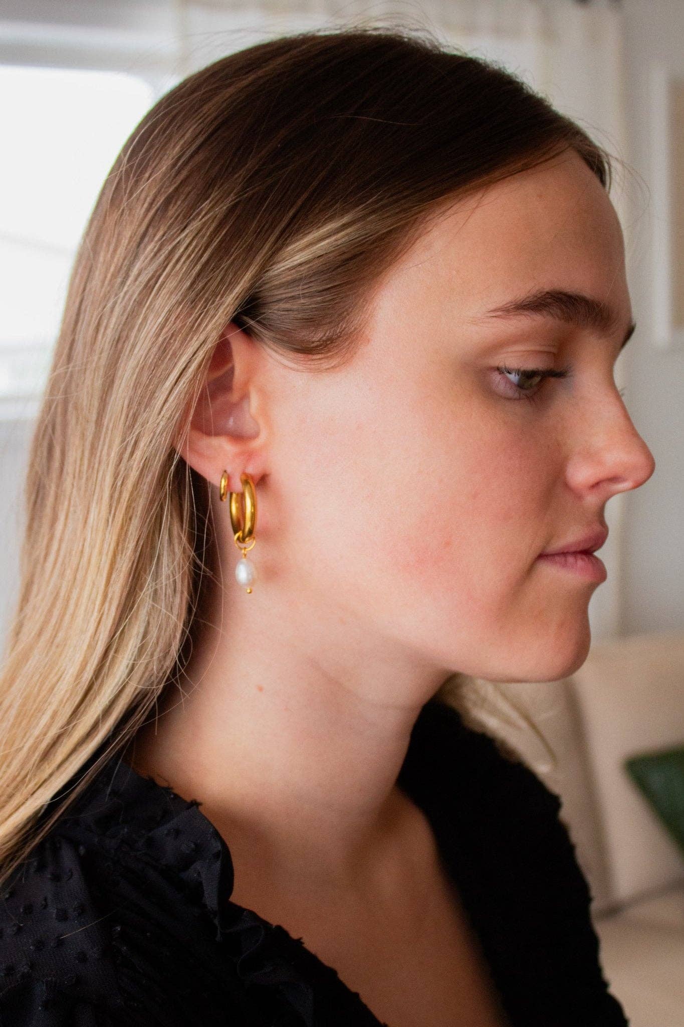 Pearl Dangle Hoops