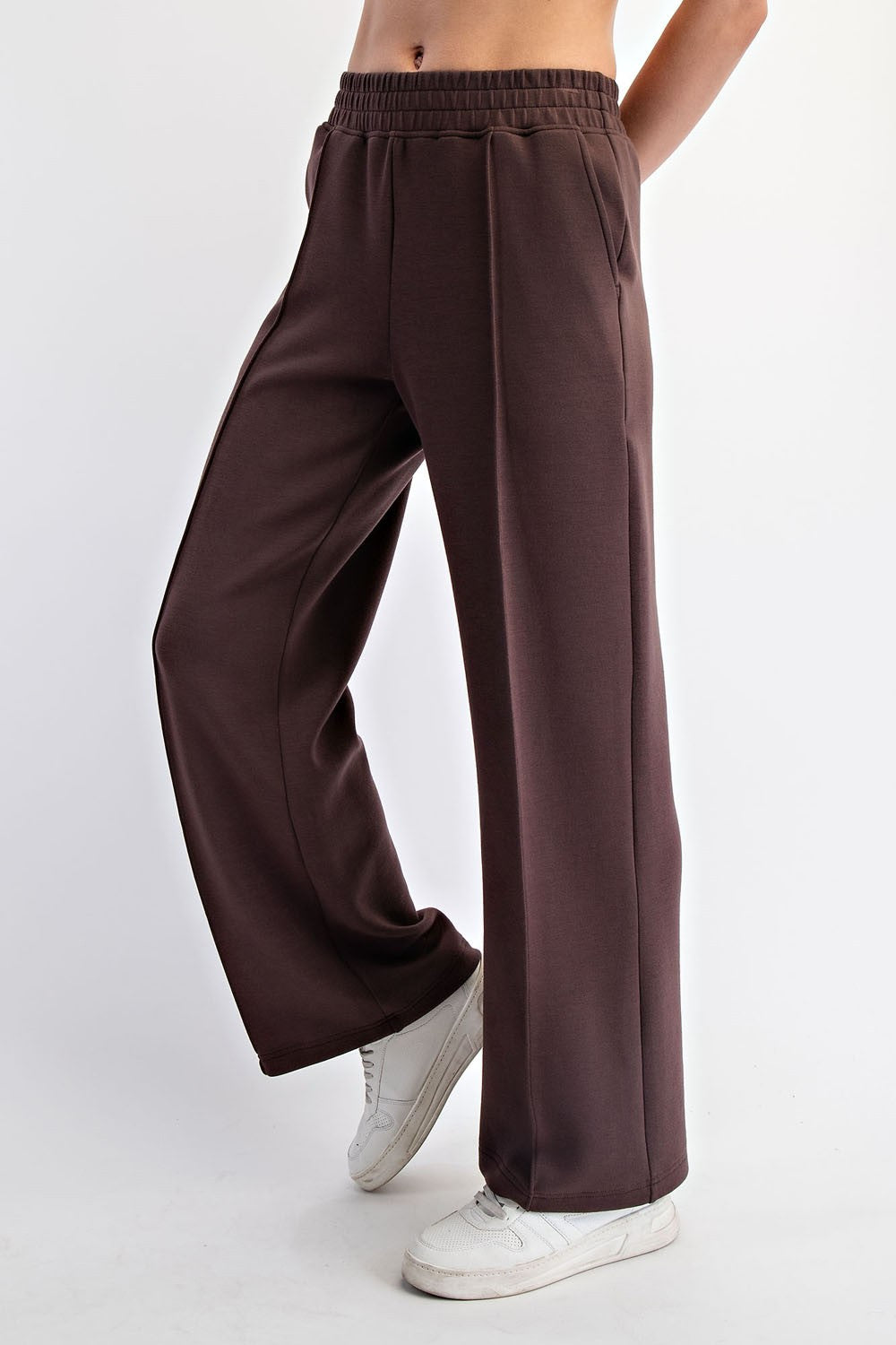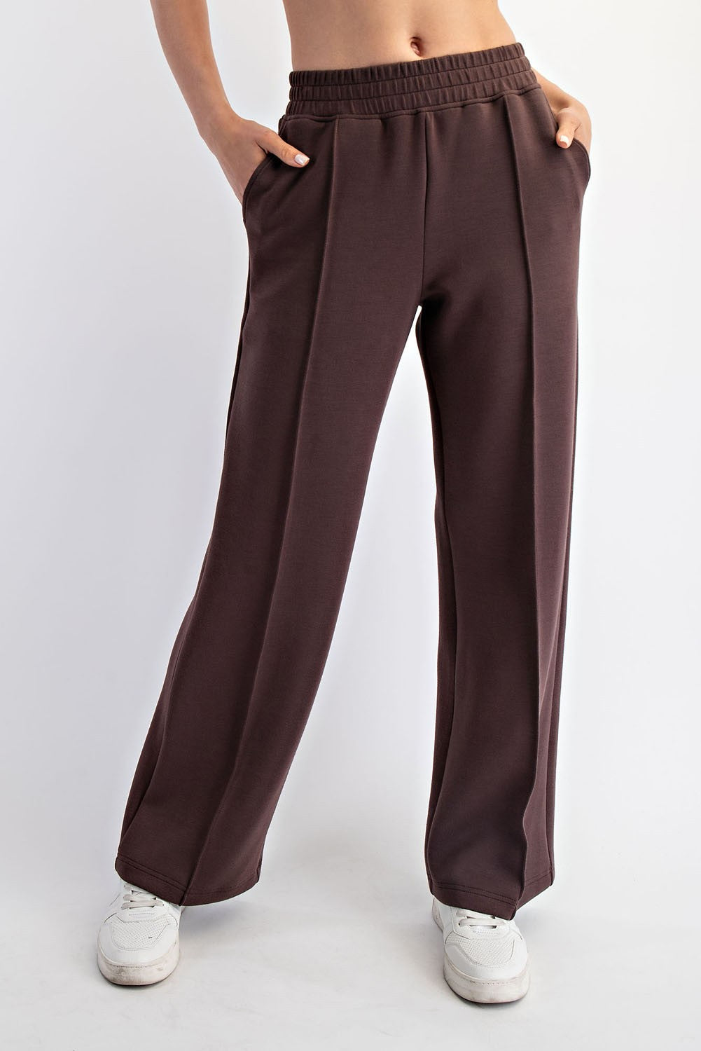 The softest scuba material set in a pintuck straight leg pant and 1/4 zip mock neck pullover