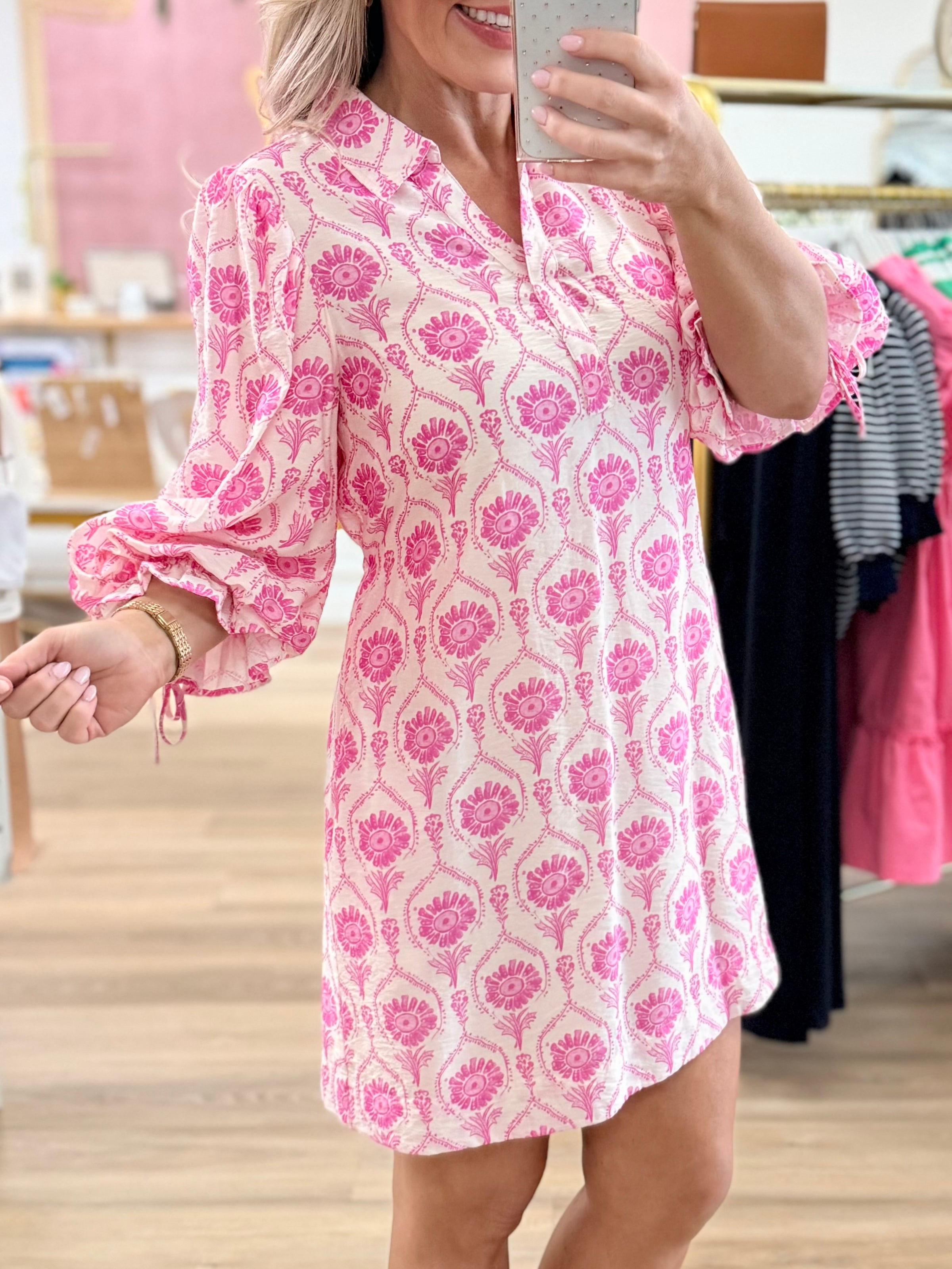 Pink 3/4 Sleeve Dress