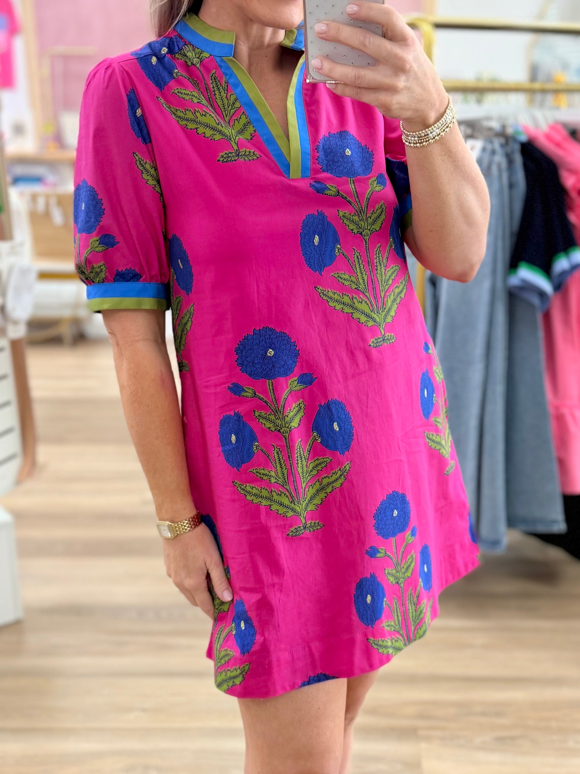 Pink Printed Shift Dress