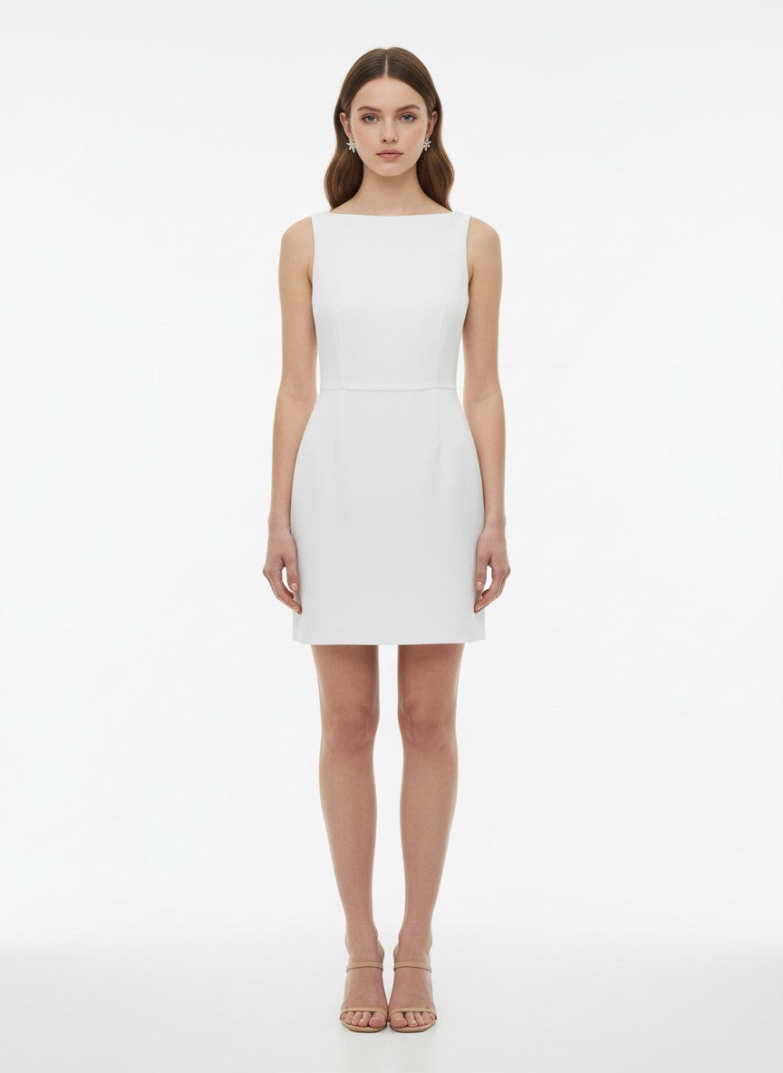 BACKLESS DETAIL BOAT NECK SLEEVELESS MINI DRESS SELF:93%POLYESTER7%SPANEX LINING:100%POLYESTER