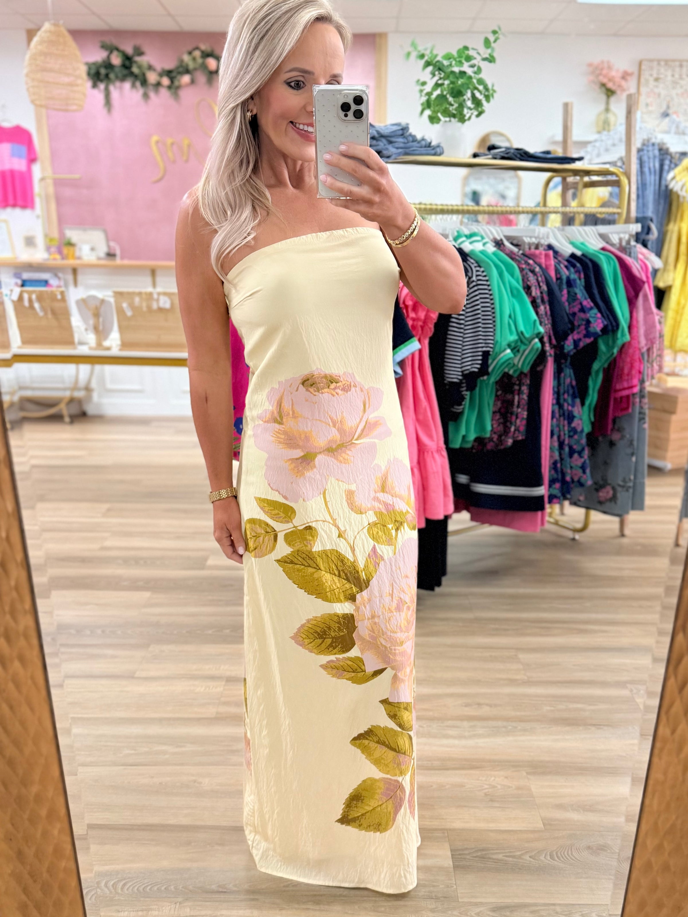 Yellow Strapless Midi