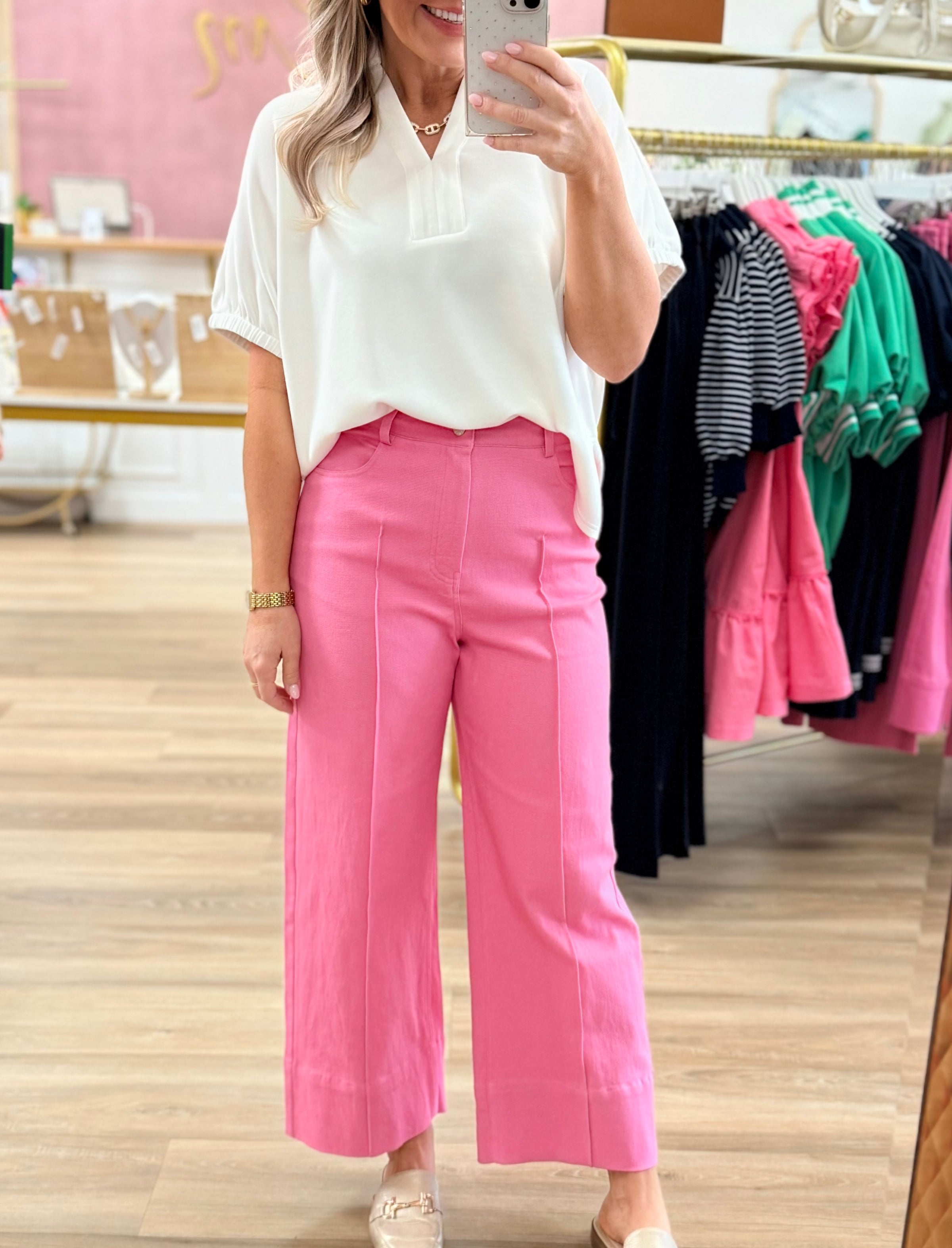Pink Cropped Denim Pants