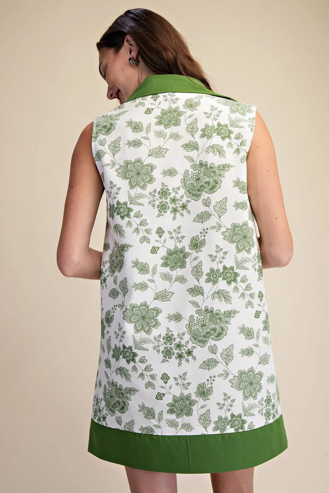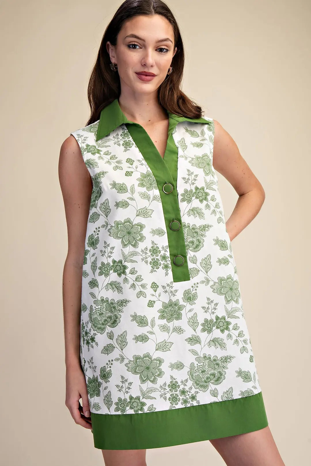 Collar Neck Sleeveless Floral Shift Mini Dress