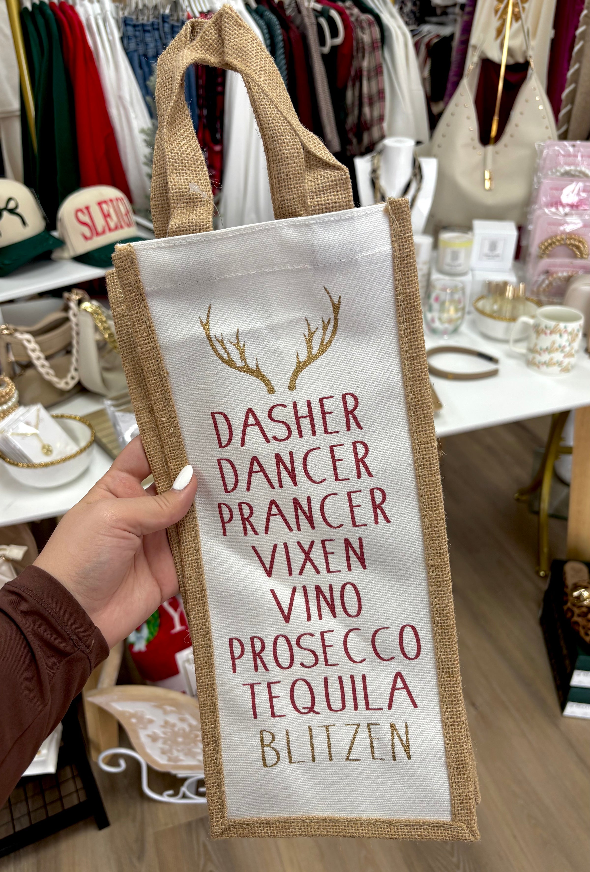 Blitzen Christmas Wine Bag
