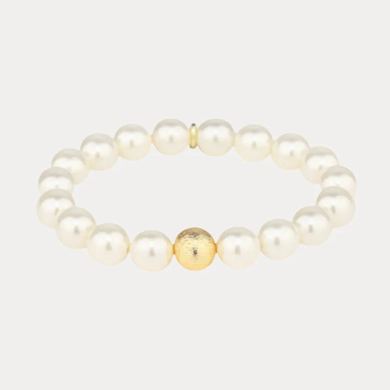 Embrace serenity with BuDhaGirl's White Pearl Mala. Featuring 10mm lustrous pearls and a brushed gold marker bead, this handcrafted bracelet is perfect for mindful meditation or everyday elegance.