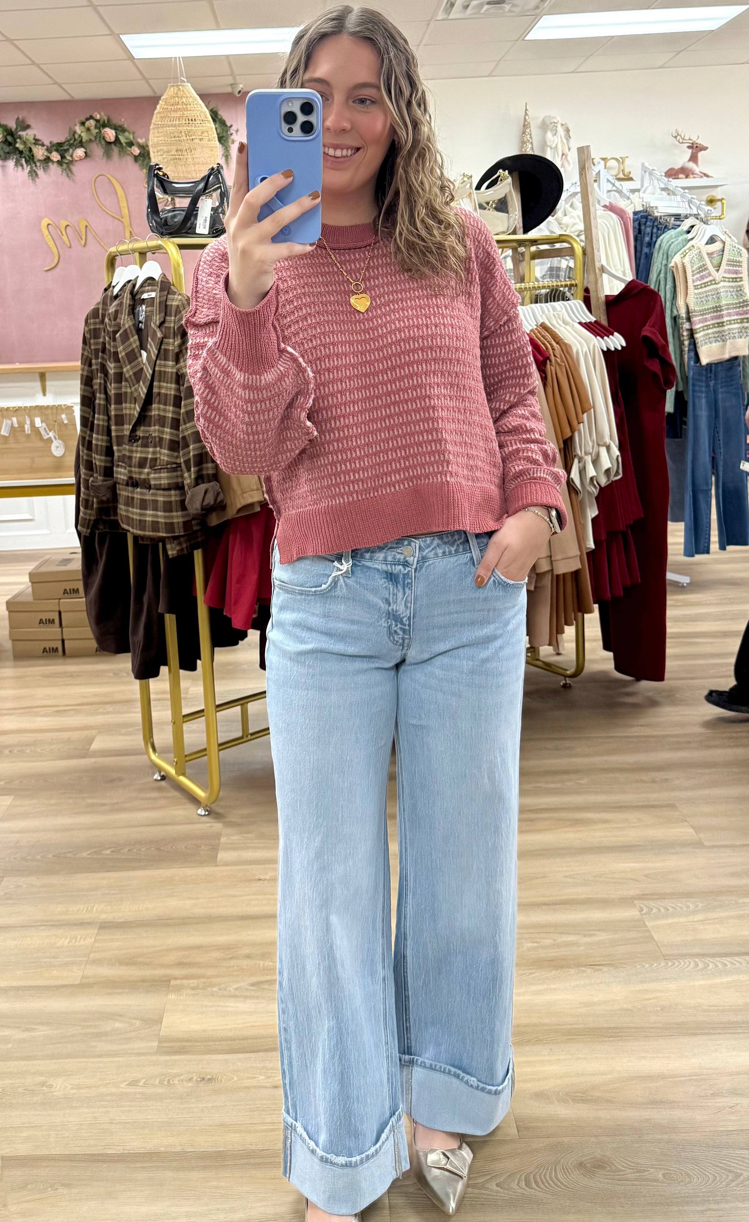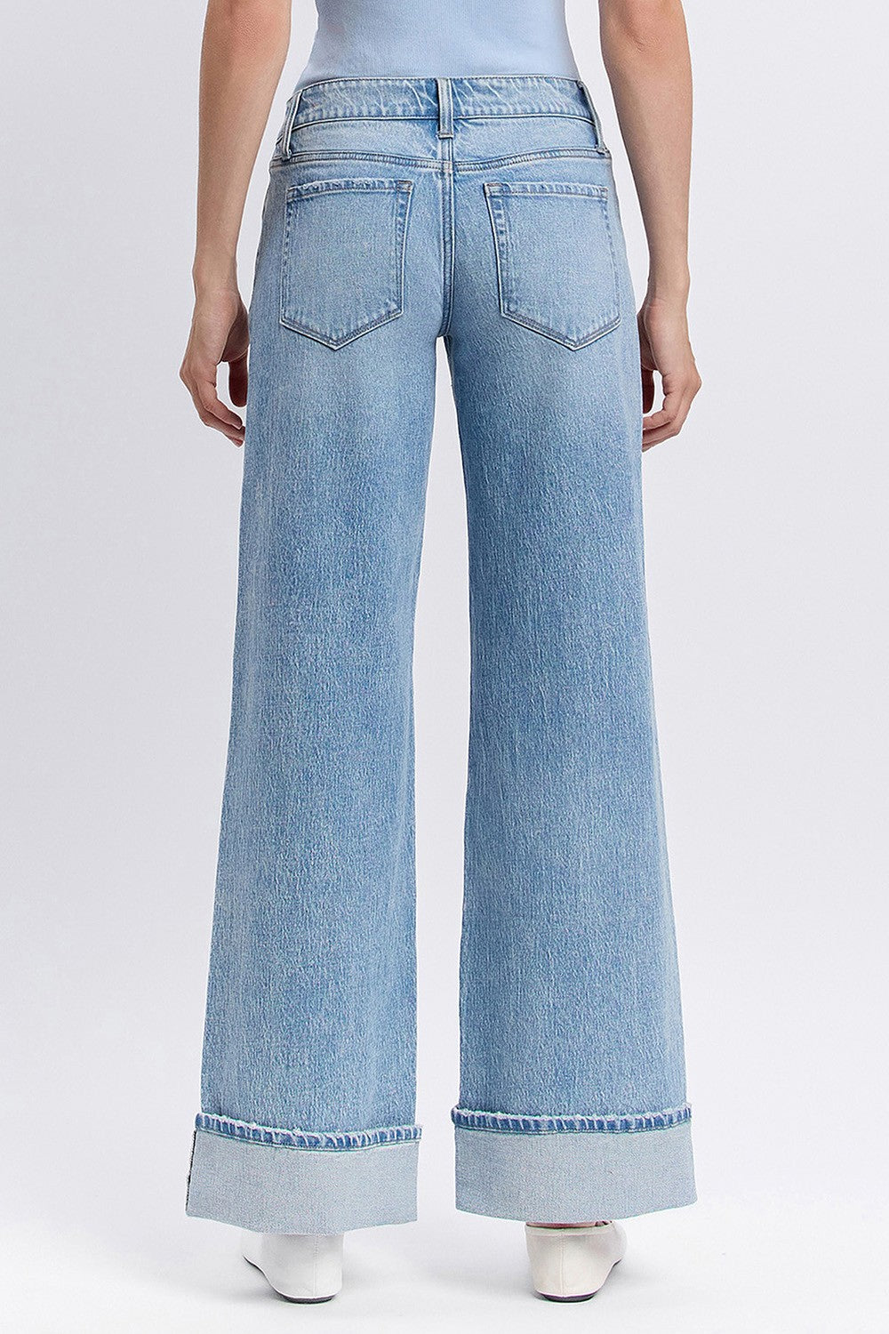 LOW RISE LIGHT WASH CUFFED BAGGY WIDE JEANS