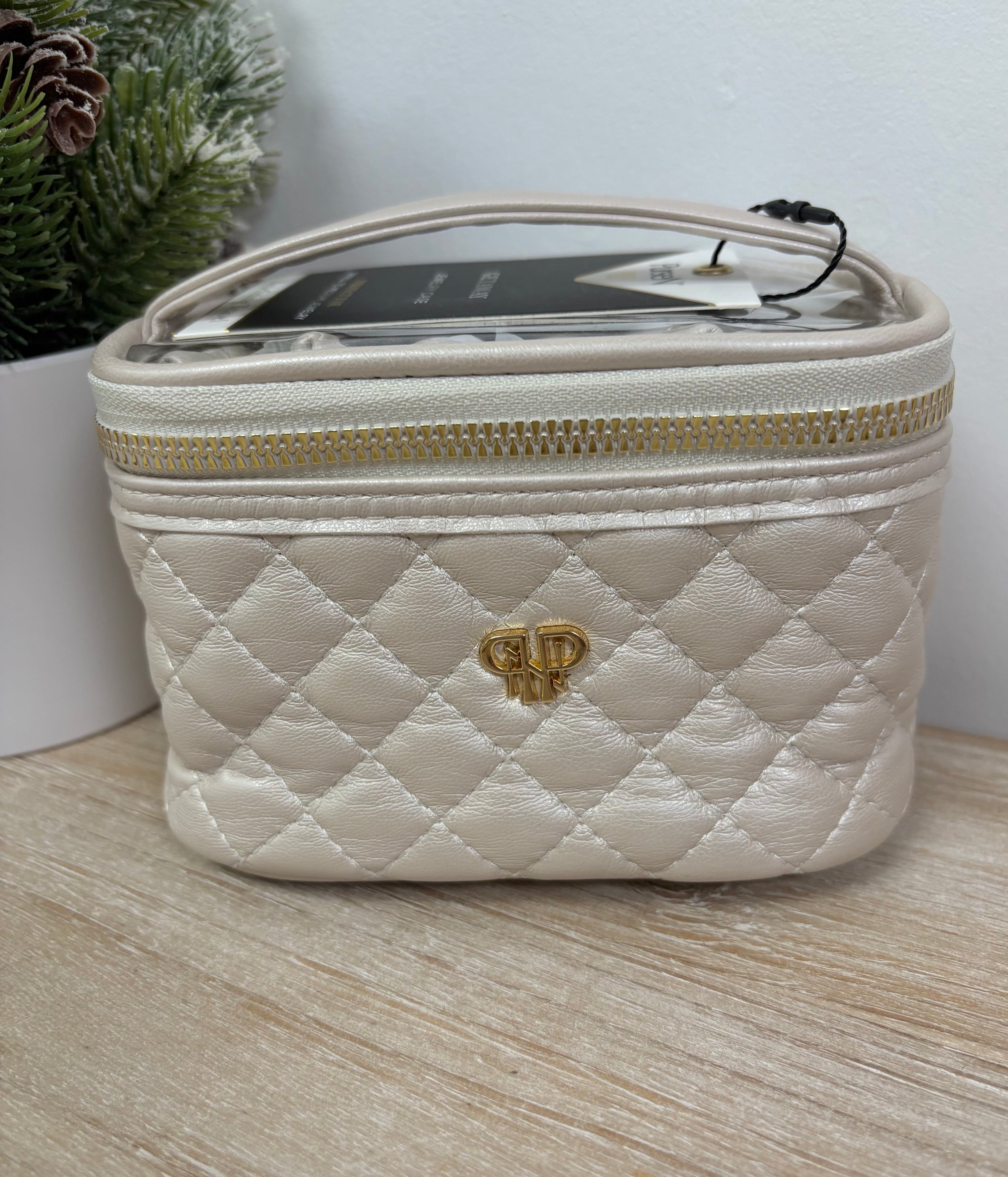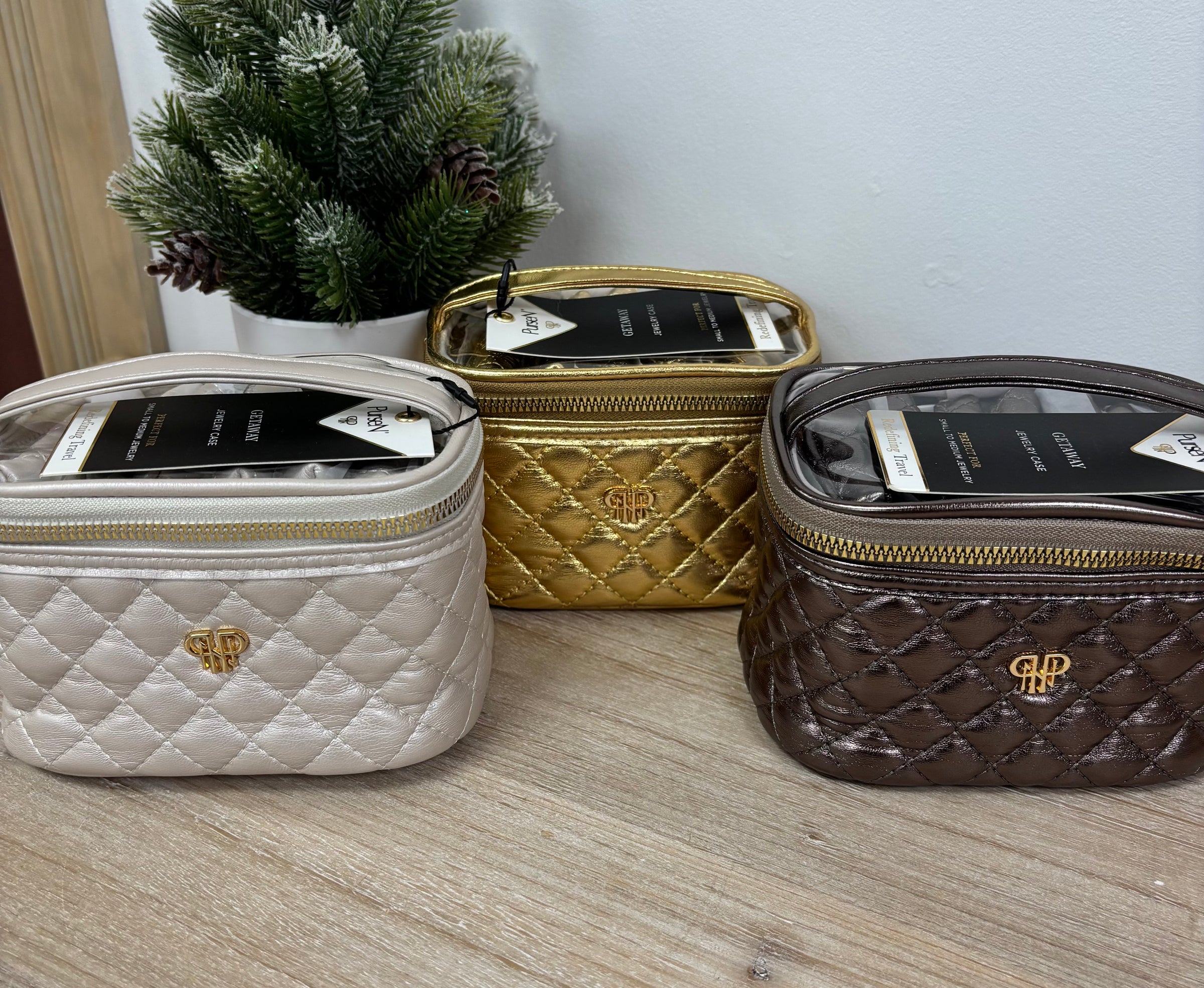 6 removable pouches, clear view windows, 1 padded ring strap, carrying handle and wipeable interior